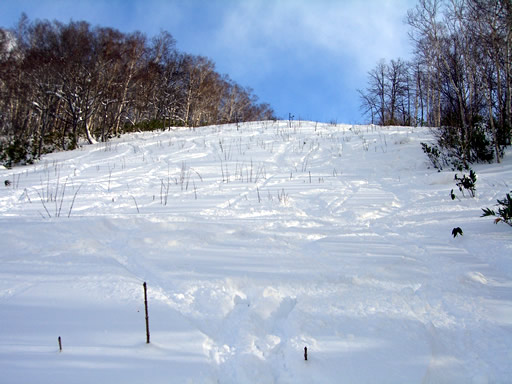 第2を降りて、西側のコースへ。昨晩は降ったし、ぱっと見はよさそうだったけど、重かった
