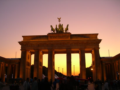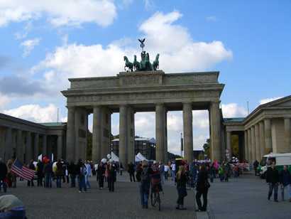 議事堂から歩いて行く途中、路面にはベルリンの壁の跡が残っていました。ドイツ統一の象徴みたいな門です。壁のあった当時は、くぐることはできませんでしたが、今は勿論自由に通れます。観光客も大勢いました