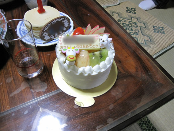 手前は、みんなで食べたケーキ。奥のは僕が焼いたパンケーキ(昔バイトしていたときに得意にしていたので、4枚ともほぼ同じ大きさで焼けるのだ)。
