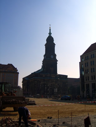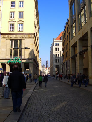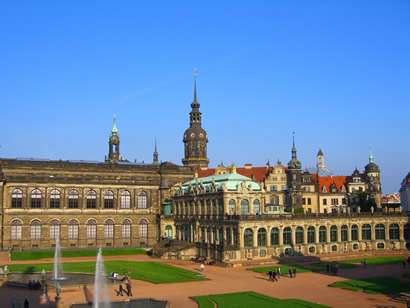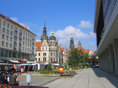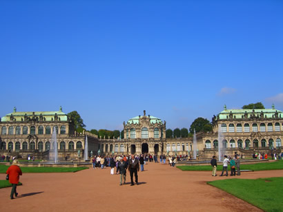 ドレスデン駅を降りてからPrager Str.(プラーガー通)を歩きZwingerへ向かう。この通は戦争で爆撃されるまでは、ヨーロッパ屈指の高級ショッピングストリートだったそうだが、今は近代的な建物が並んでいる。Altmarkt(アルトマルクト広場)を抜け、Zwingerの隣にあるインフォメーションでDresden-City-Cardを購入し、Zwingerへ。この宮殿には、5つの博物館(うち一つは休館中だった)がある。