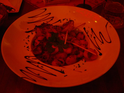 ホテルから街へ戻り、夕食。ウェイトレスに今日のお勧めは?と聞いたら、あのボードに書いてあるけど、肉料理はBeef、魚料理はSalmonまでは英語で説明できるけど、それ以上は無理と言われてしまったので(日本で同じように聞かれたら料理方法なんかを英語で説明するのはむずかしいかも)