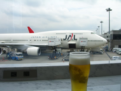 今回はちょっと贅沢して、プレミアムエコノミーを利用。そのためSakura Lounge が利用可能なので、出発までビールなどを飲んでまったり