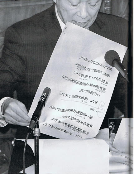 今週号の週刊新潮から 国会での答弁はこうやってバカでも読めるようにルビを振って原稿を作ってもらえないと何もしゃべれないようです。