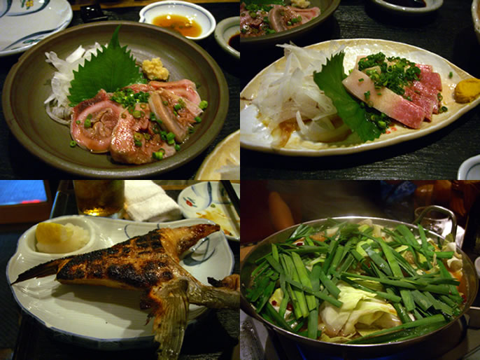 鯨の百ひろ、ベーコン、ブリかま、モツ鍋